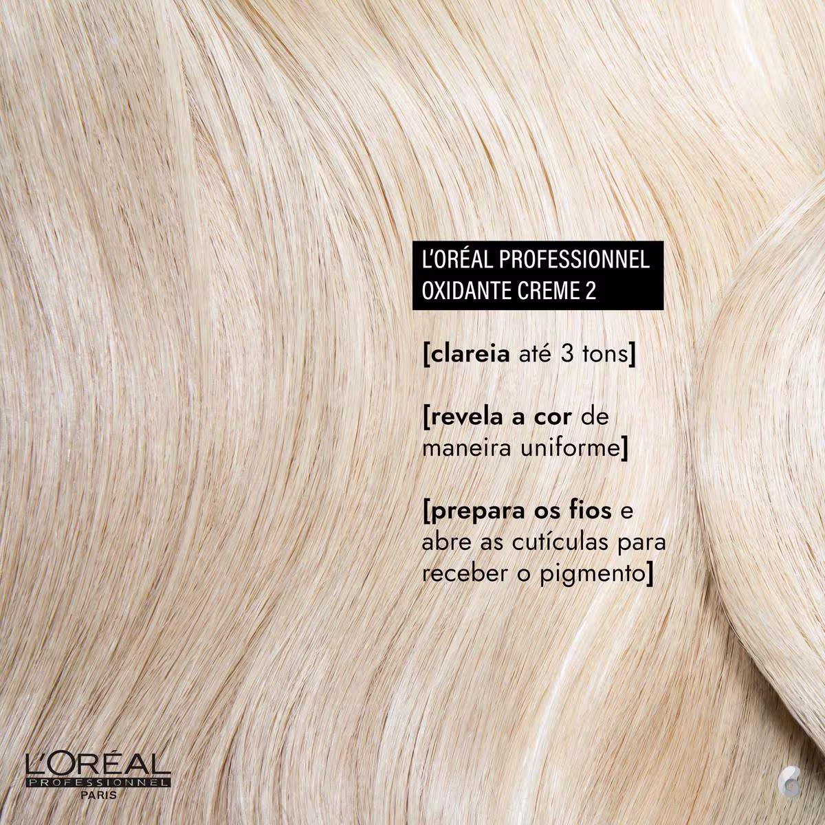 L’Oréal Professionnel Oxidante Creme 2 prepara os fios e abre as cutículas para que o pigmento penetre nos fios com homogeneidade e eficiência. Garante resultado fidedigno á cartela de cores, deixa o tom vibrante e ainda protege a fibra do cabelo.