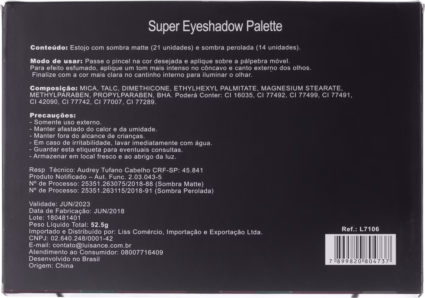 A Paleta de Sombras Luisance Super Eyeshadow permite a criação de vários looks incríveis para diversas ocasiões e estilos. Traz 21 sombras matte e 14 sombras peroladas em um estojo de acrílico fosco super prático.