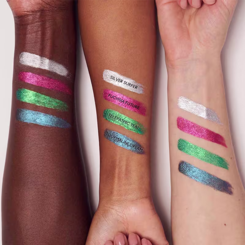 Sombra líquida metálica de alta performance, cobertura personalizável, efeito cromado e tecnologia de longa duração.