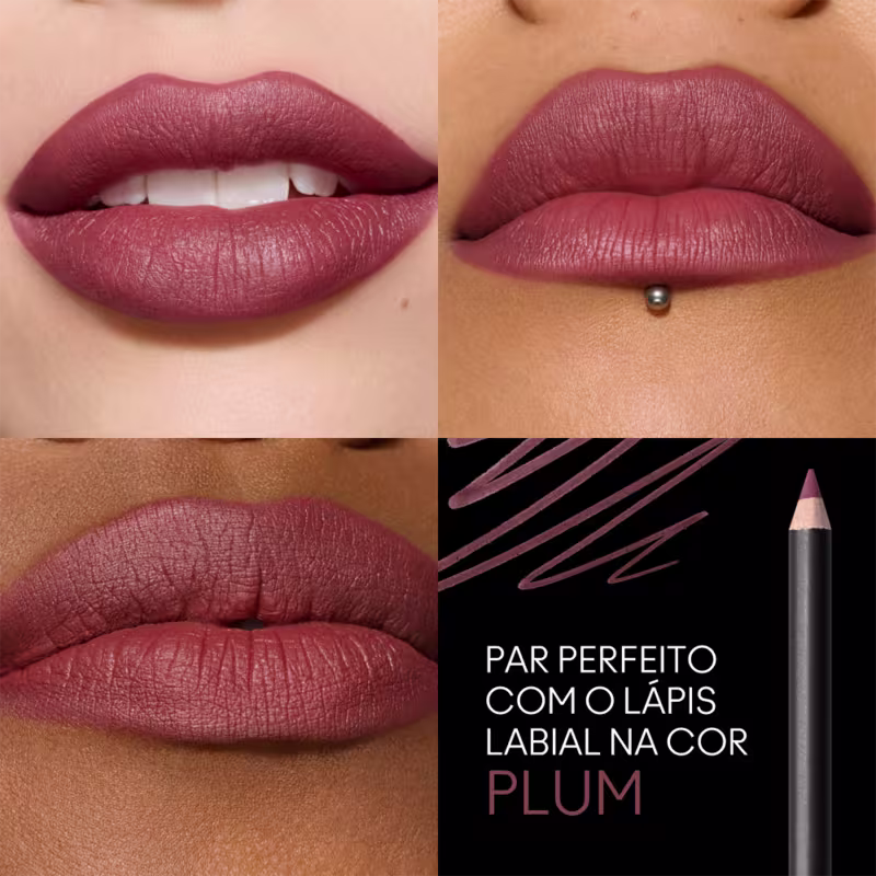 Batom matte de alta pigmentação. M·A·C MACximal Verve Swerve oferece cobertura total, hidratação por 8h, textura cremosa e acabamento volumoso.