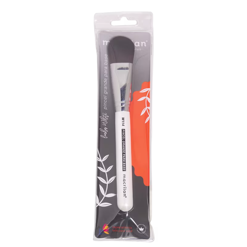 Produzido com fios sintéticos, o Pincel para Base Macrilan Grande W114 foi especialmente desenvolvido para aplicar e distribuir produtos líquidos ou em creme, como BB creams, bases e primers pelo rosto e corpo, garantindo conforto e cobertura impecável.