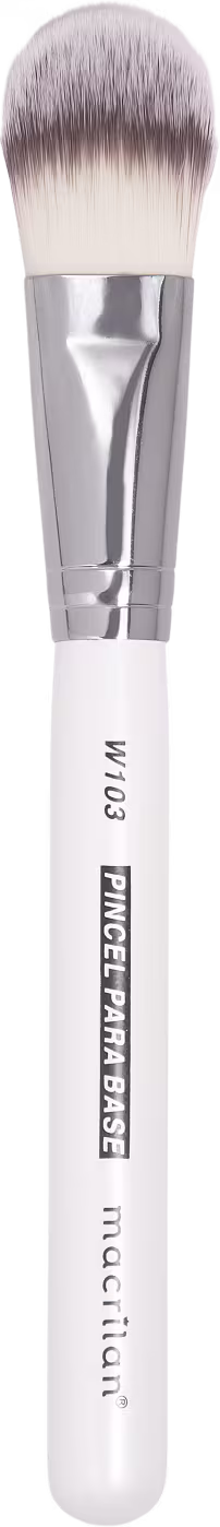 Produzido com fios sintéticos, o Pincel para Base Macrilan W103 foi especialmente desenvolvido para aplicar e distribuir produtos líquidos ou em creme, como BB creams, bases e primers pelo rosto e corpo, garantindo conforto e cobertura impecável.