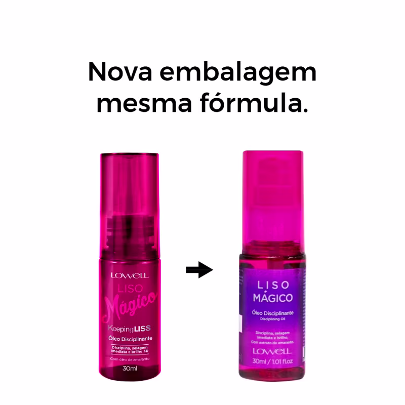 Liso Mágico Keeping Liss - Óleo Capilar 30ml: protege os fios do frizz com a selagem das cutículas e brilho 3D.