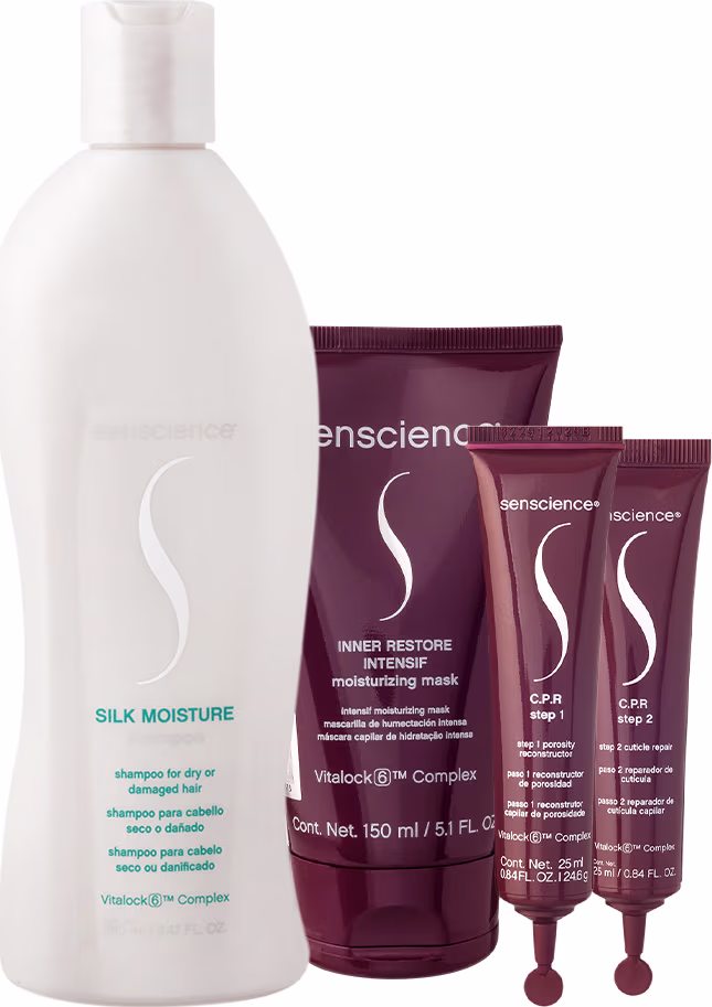 Kit Senscience Silk Moisture Intensif CPR Shampoo Máscara Ampola (4 produtos)