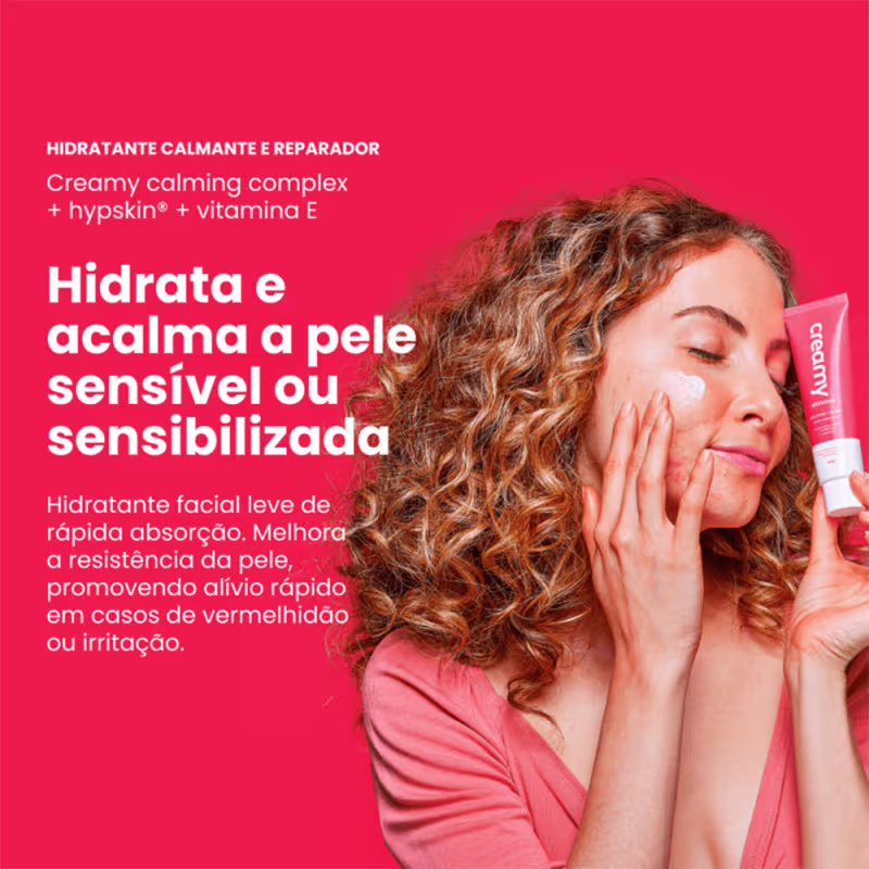 Creamy Calming Cream - Creme Hidratante Facial 40g: hidratação ultraleve que acalma e fortalece a barreira da pele. Ideal para peles sensíveis ou sensibilizadas por ácidos, poluição e demaquilantes. Reduz vermelhidão, descamação e desconforto, sem deixar a pele oleosa.