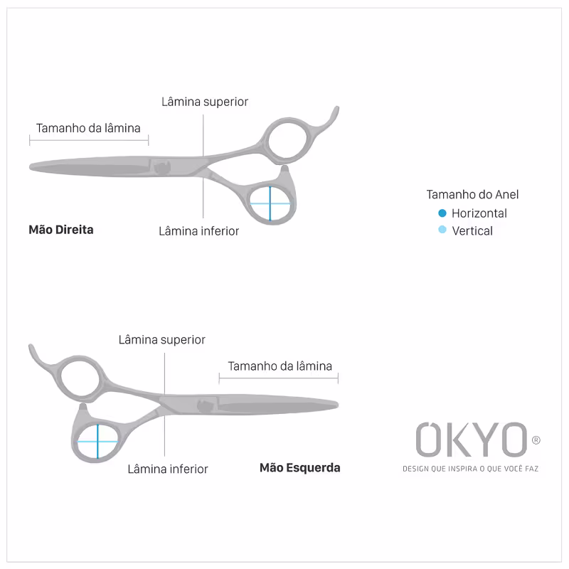 As tesouras da linha Mova, da Okyo, apresentam excelente custo-benefício e design clássico, aliado a um acabamento impecável. São ideais para cortes precisos, retirada de volume, texturização dos fios e suavização de linhas.