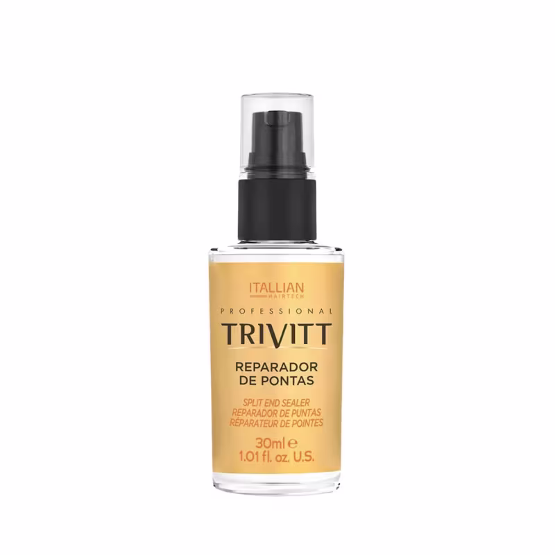 Trivitt Fluído Para Escova 300ml + Reparador de Pontas 30mlFluído para Escova Itallian Trivitt 300mlAuxilia no processo de escova com secador.O Fluido para Escova Trivitt 6, permite que a escova deslize com suavidade sobre qualquer tipo de cabelo, além de envolver e proteger do calor do secador e da formação de pontas duplas.Modo de usar:Agite antes de usar. Vaporize pequenas quantidades do Fluido para Escova Trivitt sobre os cabelos limpos e úmidos, mantendo a embalagem na posição vertical e a uma distância de aproximadamente 20cm. Proceda a escova com secador.Ação e Resultado: Permite que a escova deslize com suavidade, protegendo do calor do secador e da formação de pontas duplas.Como aplicar-Agite antes de usar.-Vaporize pequenas quantidades do Fluido para Escova Trivitt sobre os cabelos limpos e úmidos.-Proceda a escova com secador.Reparador de Pontas c/ Filtro Solar - 30mlRecupera o brilho, repara as pontas duplas e condiciona os fios. A tecnologia com silicones de Itallian Trivitt Reparador de Pontas forma uma película que protege o cabelo e deixa os fios macios e com brilho luminoso sem que eles fiquem pesados ou oleosos.ResultadoCabelos mais fortes e resistentes à quebra. Indispensável para cabelos sensíveis e danificados que passaram por química. Protege contra o calor do secador, água do mar ou cloro de piscina.Kit Contém:01 Fluido Escova Trivitt 300ml01 Reparador de Pontas Trivitt 30ml