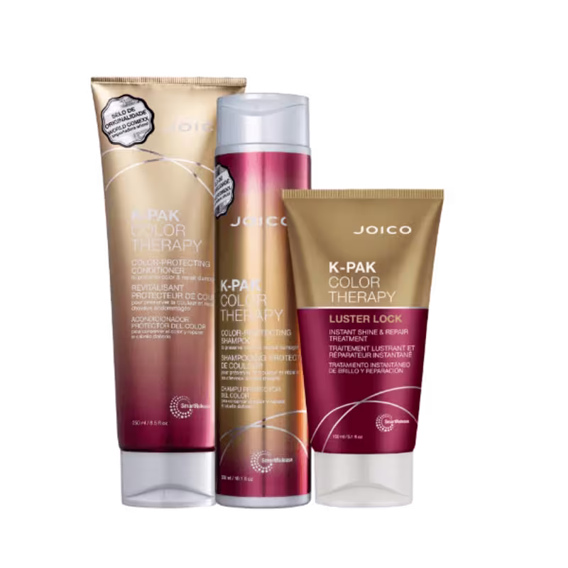 Joico K-PAK Color - Shampoo 300ml+Condicionador 250ml+Mascara 150ml Kit de tratamento para cabelos coloridos. Kit Joico K-PAK Color Therapy Smart Release Trio promove tratamento intensivo para garantir cor vibrante, protegida e duradoura. Kit Joico K-PAK Color Therapy Smart Release Trio conta com fórmula que limpa suavemente, hidrata, nutre, auxilia na proteção da cor e restauração dos fios, além de proporcionar brilho intenso, melhorar a elasticidade e deixar os fios mais fortes. Contém Joico K-PAK Color Therapy Smart Release - Shampoo 300ml: limpa suavemente, auxilia na proteção da cor e restauração dos fios. Joico K-PAK Color Therapy Smart Release - Condicionador 250ml: reverte os danos causados pelo tempo, protege a cor e ilumina, hidrata e condiciona intensamente, além de garantir maleabilidade, força e elasticidade. Joico K-PAK Color Therapy Luster Lock Smart Release - Máscara Capilar 140ml: máscara de tratamento profundo e instantâneo para cabelos coloridos. Nutre, repara, hidrata e protege a cor dos cabelos, além de garantir brilho intenso. Ação Bio-Advanced Peptide ComplexTM: peptídeo de alta compatibilidade como o cabelo que penetra no interior da fibra capilar e restaura sua saúde desde o interior, deixando os fios muito mais fortes, saudáveis e brilhantes. Quadrabond Peptide ComplexTM: ajuda a nutrir, restaurar e proteger a camada mais exterior da cutícula do cabelo, para segurar a cor ativamente no interior do cabelo, proporcionando uma coloração mais vibrante e duradoura. Óleo de Manketti Africano: verdadeira fonte de vitaminas, o ingrediente tem a função de proteger e evitar o desbotamento. Queratina: proteína poderosa, o componente reverte os danos, ajuda a reparar o fio e ainda reconstrói a fibra capilar. Óleo de Argan: rico em vitaminas, antioxidantes e ácidos graxos, o óleo é capaz de hidratar e nutrir profundamente. Smart Release: é responsável por liberar Arginina, Queratina e Óleo de Rosa Mosqueta ao longo de todo o dia, sempre de forma constante e gradual para ajudar a reparar, alinhar e proteger os cabelos dos efeitos cumulativos do dia a dia. Conselho de Aplicação Aplique a quantidade necessária de shampoo de acordo com o comprimento dos fios. Massageie até obter espuma e enxágue bem. Repita a aplicação caso seja necessário. Passe a máscara nos cabelos limpos e úmidos. Pause de 2 a 5 minutos e enxágue. Pode ser usada como pré-shampoo: aplique nos cabelos secos, pausando de 2 a 5 minutos. Enxágue e lave com shampoo e condicionador. Aplique uma pequena quantidade de condicionador sobre o comprimento e as pontas. Deixe agir de 1 a 2 minutos e, por fim, enxágue completamente. Sempre respeite o tempo de ação recomendado. Deixar o produto no cabelo por mais tempo não potencializa o resultado, já que depois do período sugerido, ele deixa de fazer efeito. Portanto, o cabelo não ficará mais hidratado ou reconstruído se o produto agir por muito tempo, e pode até deixar os fios mais pesados ou oleosos. Resultado Maior durabilidade da cor, hidratação, maciez e brilho intenso.