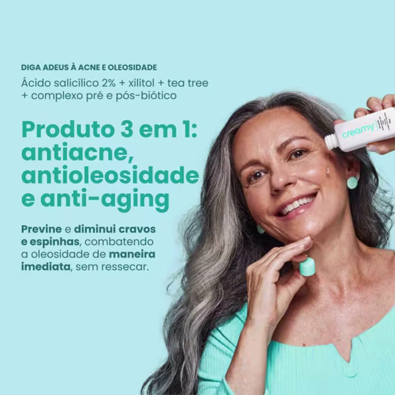 Kit Creamy Ácido Salicílico - Solução Tônica Antiacne 90ml (2 unidades) Solução tônica antiacne para peles oleosas e acneicas. Creamy Ácido Salicílico atua no controle da oleosidade, cravos e espinhas. Possui ainda ingredientes suavizantes e calmantes que tornam essa solução segura para as peles mais sensíveis, regulando a oleosidade sem ressecar. Além disso, ajuda a suavizar linhas finas, poros dilatados e a vermelhidão causada pela acne. Conselho de Aplicação Uso diurno e noturno. Aplicar de 5 a 10 gotas do produto sobre a pele do rosto, pescoço e/ou colo, se desejar. Espalhe com as mãos. Deve ser usado logo após a limpeza da pele, antes do seu creme hidratante ou de tratamento. Pela manhã use sempre um protetor solar.