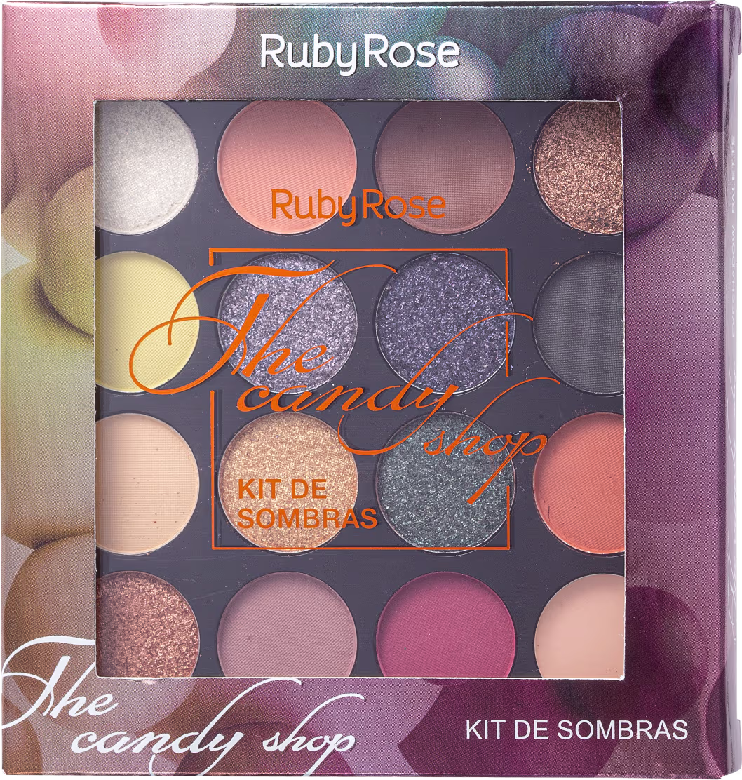 Paleta de sombras com 15 cores. Paleta de Sombras The Candy Shop Ruby Rose traz tons doces e coloridos com um toque sofisticado e cheio de brilho. Perfeito para criar looks divertidos e estilosos.
