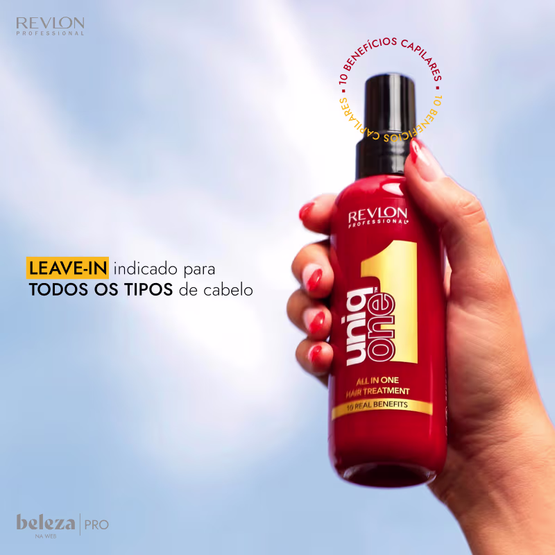 O Leave-in Revlon Professional Uniq One deixa os fios hidratados instantaneamente, fortalecidos e sem frizz. Além disso, tem proteção térmica e da cor, deixando o cabelo com brilho, suave e sem pontas duplas.