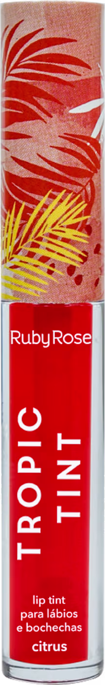 Ruby Rose Tropic Tint pigmenta a boca e as bochechas de maneira suave mas duradoura, na qual a cor parece vir de dentro para fora. Possui textura leve e líquida que usa tons avermelhados e alaranjados para ficar ainda mais próximo do natural.
