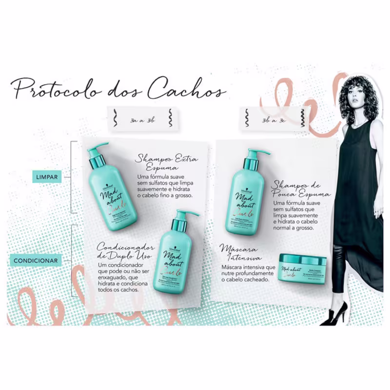 Schwarzkopf Professional Mad About Curls Low Foam Cleanser proporciona fios brilhantes, macios e com movimento. Protege contra a ação agressiva de temperaturas até 80°C, além de tornar o cabelo mais forte e resistente.
