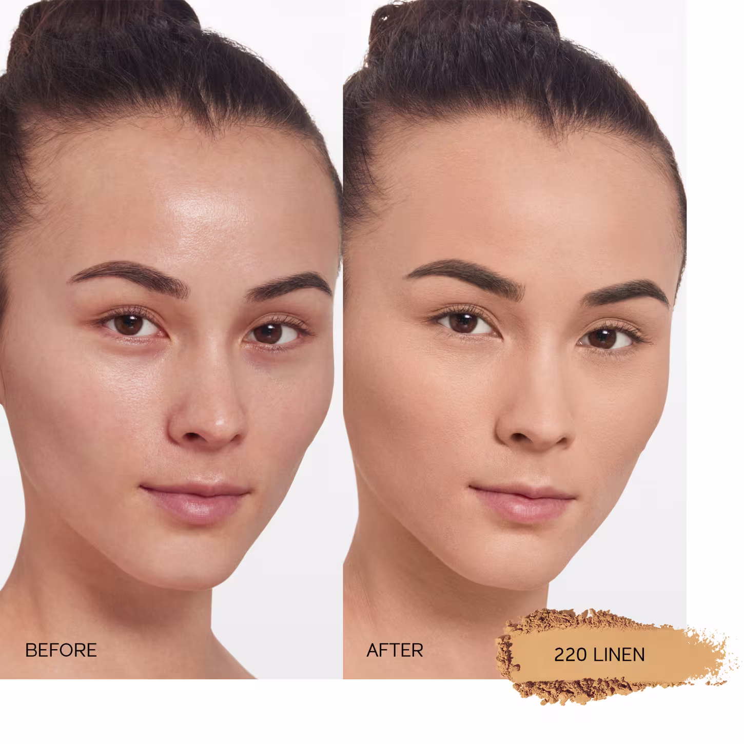 Base em pó com acabamento natural. Shiseido Synchro Skin Self-Refreshing Custom Finish garante um tom uniforme, absorve a oleosidade por até 8 horas e é resistente à umidade e ao calor.