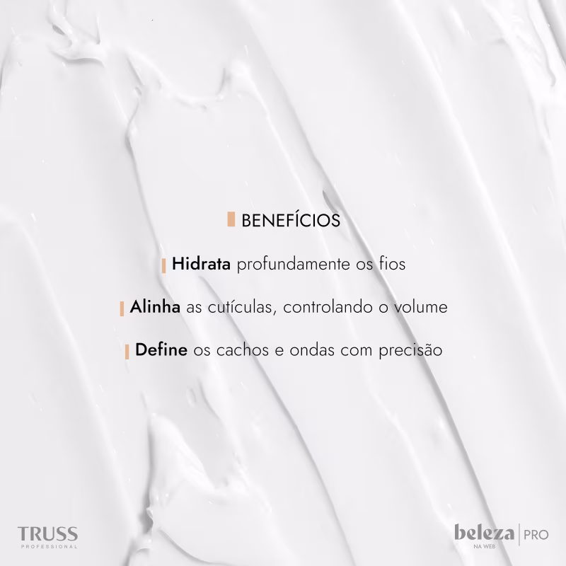 Curly, de Truss, é a linha que entrega hidratação ao longo do dia para os fios com ondulação média ou alta. Trabalha com reposição hídrica e de óleos, além de manteigas, para uma umectação mais potente. Permite que o profissional encontre mais durabilidade na escova cacheada e entregue tratamento durante e após a visita da cliente no salão.