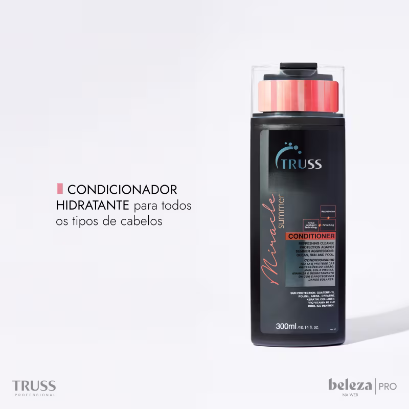 Condicionador Truss Miracle Summer, que hidrata e protege os fios. Garanta melhores ofertas e Condicionadores de Truss na BLZ PRO. Ver mais ❯