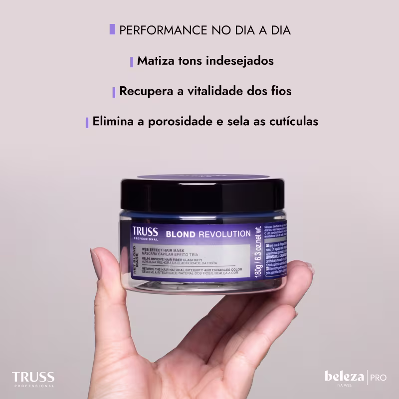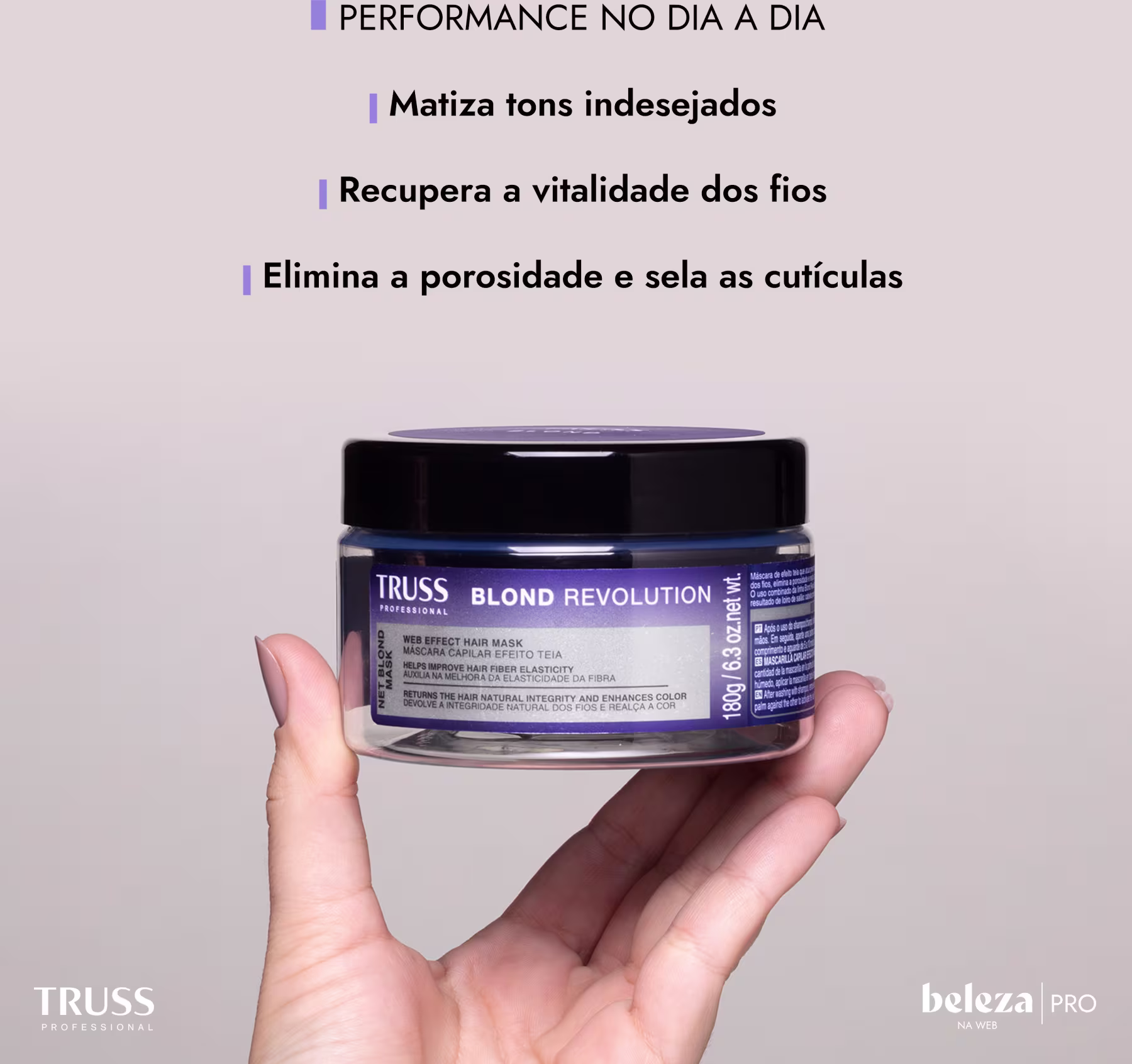 Eleve o nível dos serviços oferecidos no seu salão com a poderosa Máscara Capilar TRUSS Net Blond Revolution e entregue resultados incríveis aos seus clientes, tornando-os ainda mais satisfeitos e confiantes com seus cabelos!