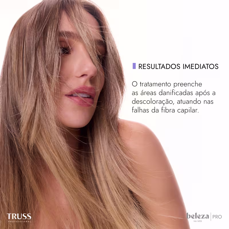 Blond Revolution, de TRUSS, entrega resultados visíveis, protegendo a fibra capilar contra novos danos e prolongando a intensidade da cor. É ideal para profissionais que desejam proporcionar loiros intensos e radiantes.