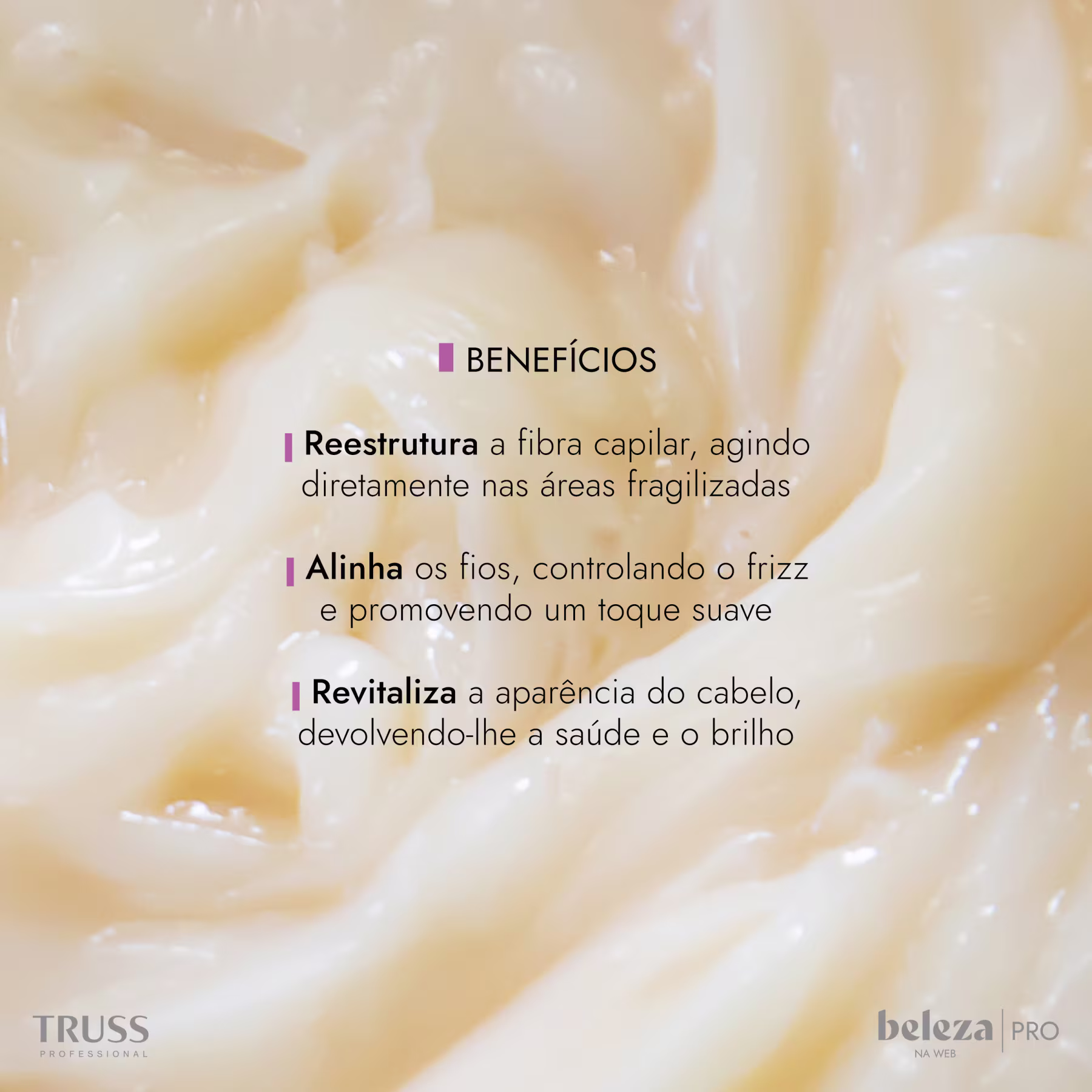 Condicionador para cabelos danificados e processados quimicamente. Truss Uso Obrigatório Plus+ ajuda a recuperar, reestruturar e reparar totalmente as áreas da fibra capilar fragilizadas.