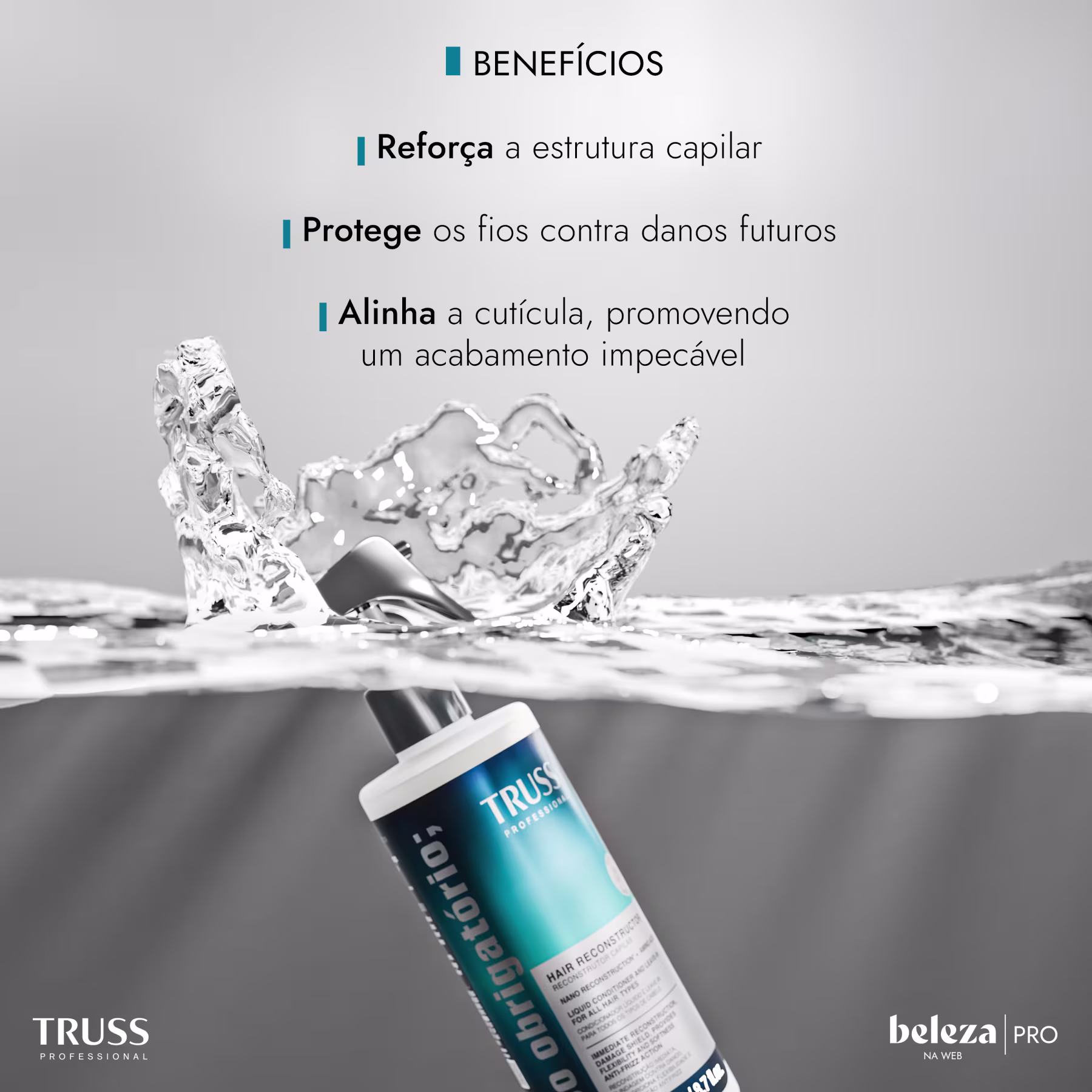 O Tratamento Líquido TRUSS Uso Obrigatório traz fórmula fórmula inovadora, enriquecida com Nano Reconstruction e Aminoácidos, penetra profundamente na fibra capilar, promovendo uma reconstrução imediata e duradoura.