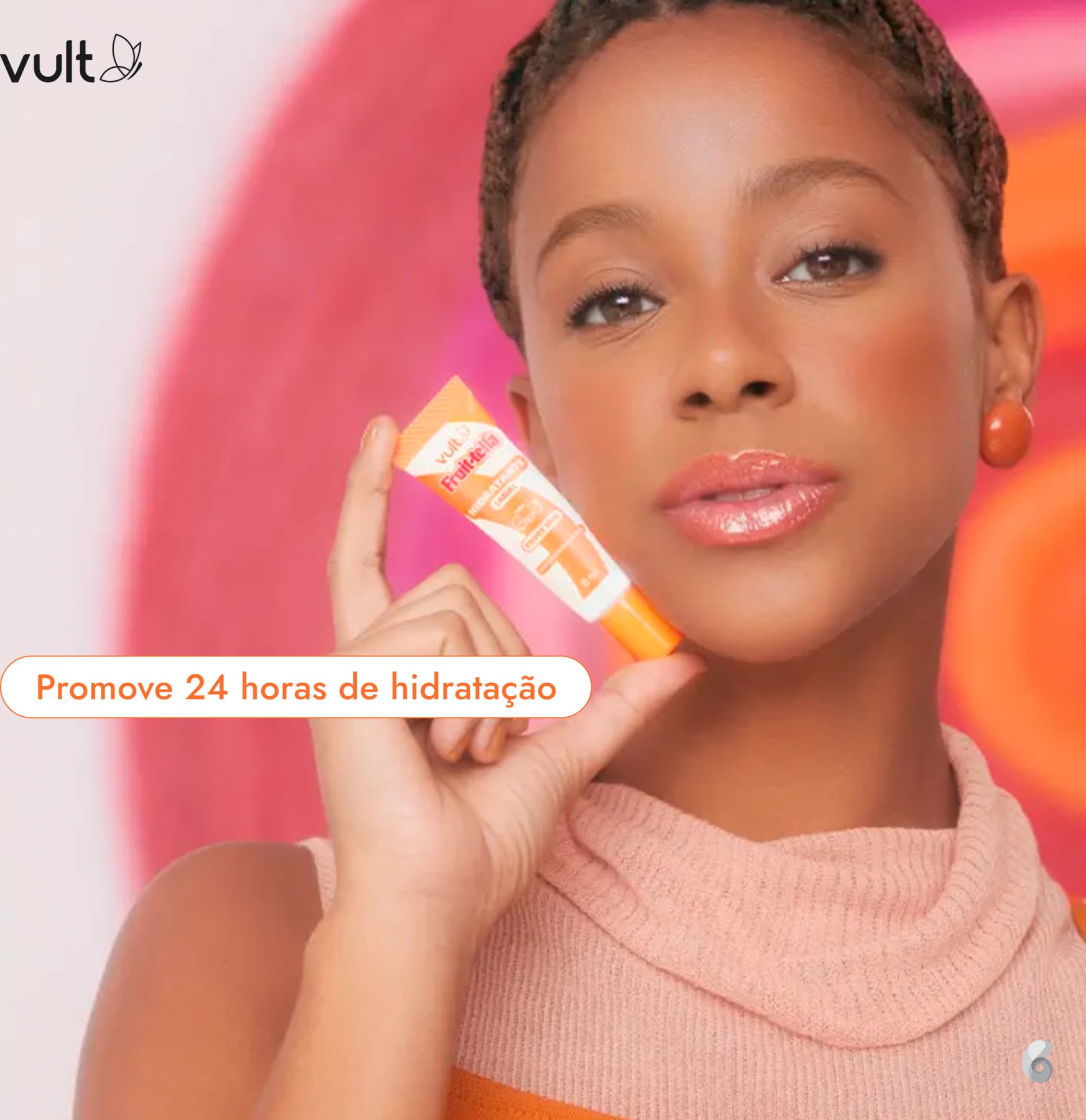 O Hidratante Labial Vult Fruit-tella® oferece aos seus clientes uma experiência sensorial deliciosa, com o cheirinho irresistível das balas Fruit-tella®! Sua fórmula vegana e cruelty-free, enriquecida com Ácido Hialurônico, Vitamina E e Vitamina F, proporciona 24 horas de hidratação profunda, deixando os lábios macios, protegidos e com um lindo efeito gloss. Ideal para ser usado sozinho ou como base para outros produtos labiais, é perfeito para clientes que buscam hidratação intensa, brilho natural e uma explosão de sabor nostálgico.