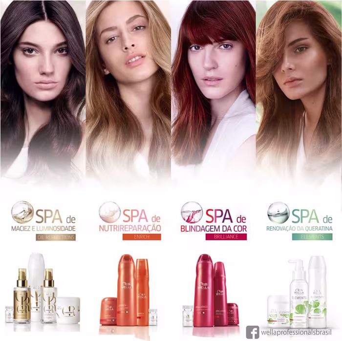 Com mais de 130 anos no mercado, e com origem alemã, Wella Professionals acompanha as tendências década após década e investe em estudos tecnológicos para estar sempre entre as maiores. A marca cuida do cabelo colorido, loiro, oleoso, sem vida, ressecado, envelhecido e com química ou alisamento. Com ativos poderosos, revitaliza a saúde capilar e recupera a beleza, o brilho, a maciez e o movimento dos fios. Há cem anos, a marca inova a cada dia para atender sempre e com mais atenção as suas clientes.