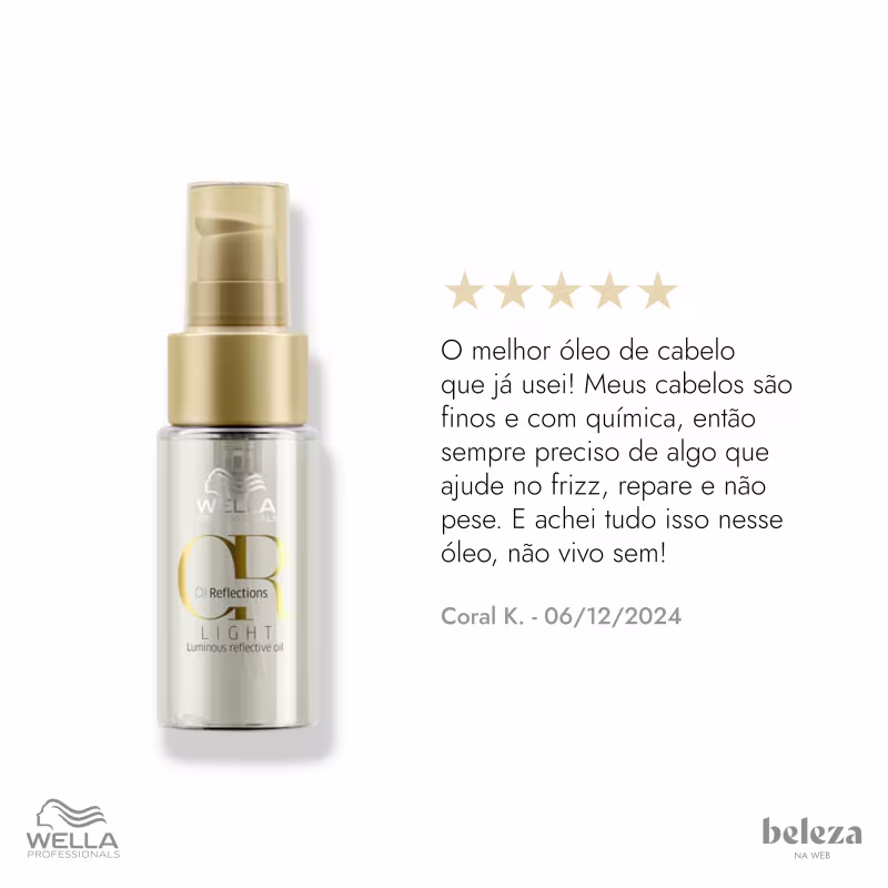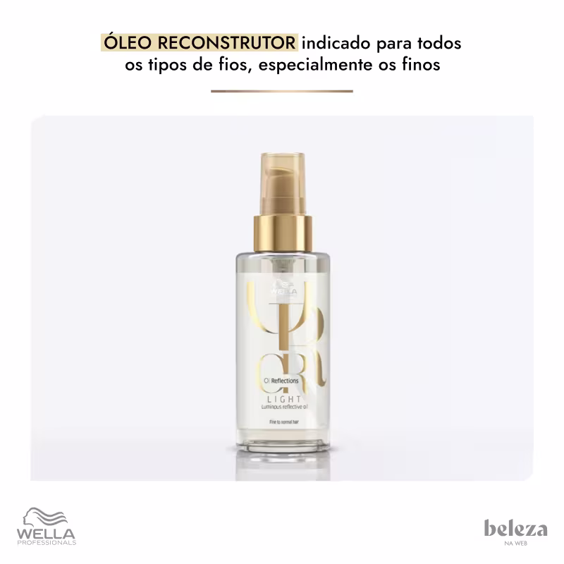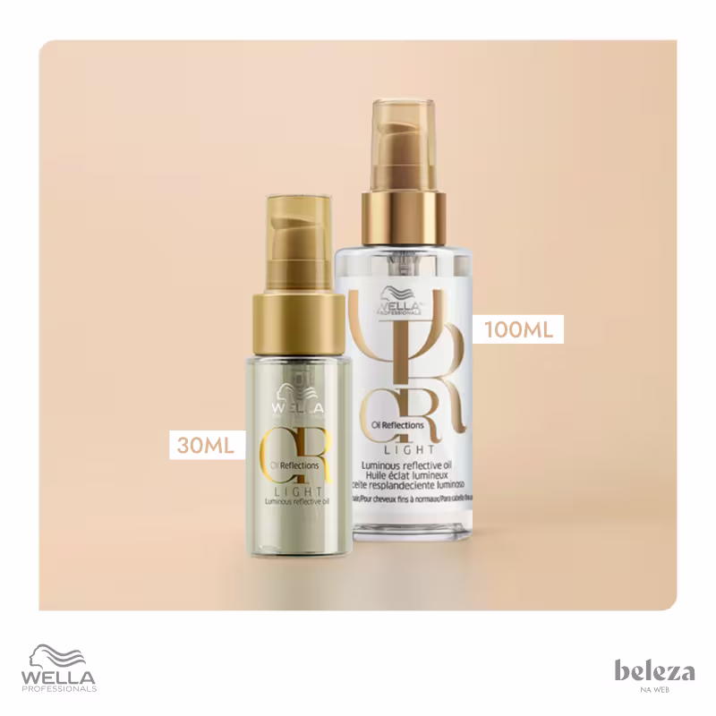 Disponível: óleo Wella Oil Reflections Light 100ml e 30ml.
