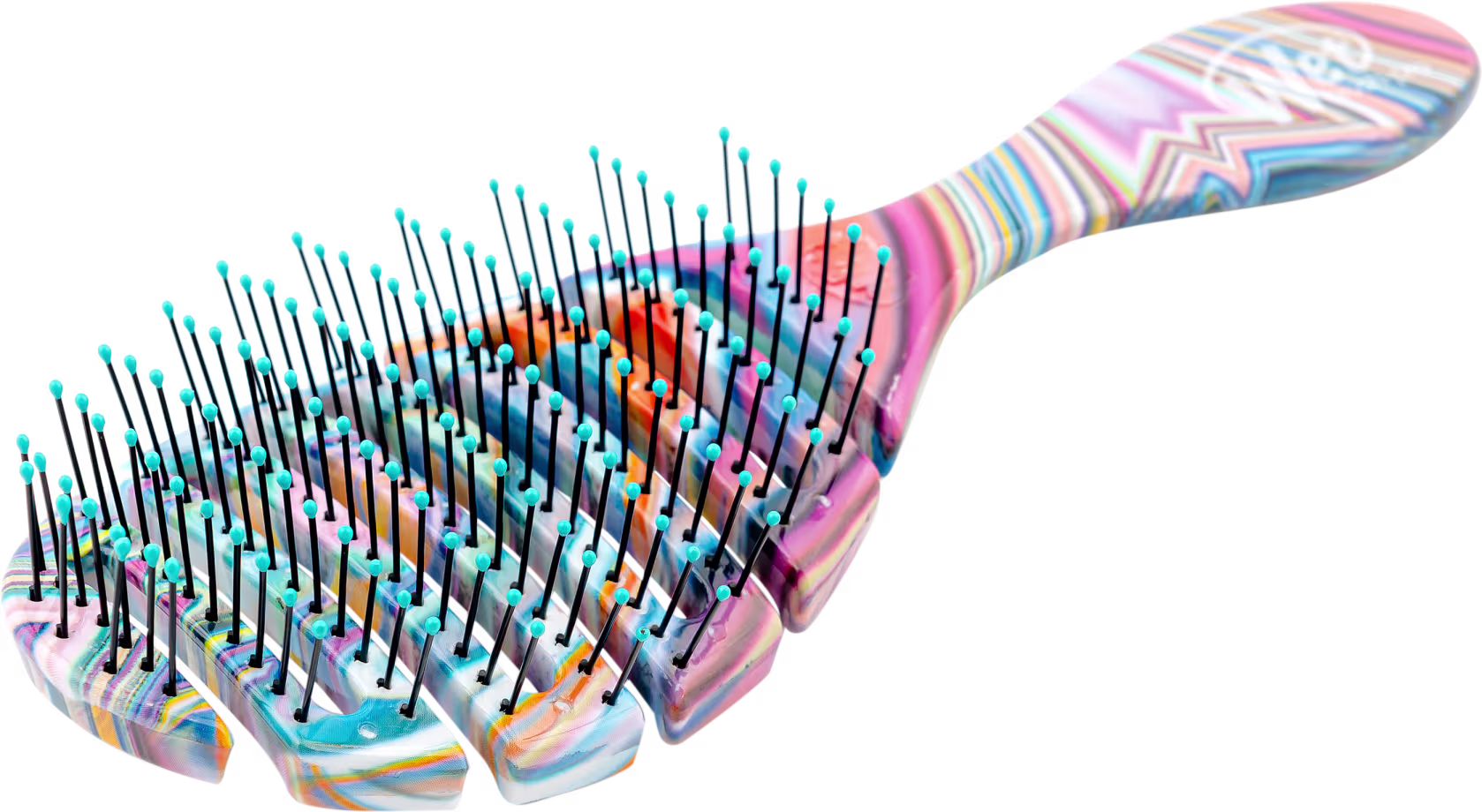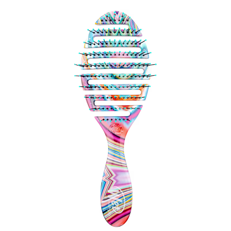 Escova de cabelo. Com estampa multicolorida e divertida, Wet Brush Pro Flex Dry Eletric Dreams acelera o tempo de secagem e desembaraça o cabelo úmido com facilidade e suavidade sem dor ou quebras, danificando menos os fios.