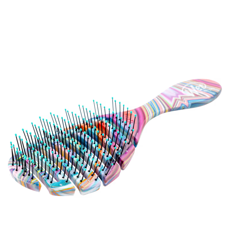 Escova de Cabelo Wet Brush Pro Flex Dry Eletric Dreams possui formato ergonômico super flexível que se adapta à cabeça, garantindo conforto na hora de escovar o cabelo. Além disso, o design vazado permite que o ar passe mais rápido e proporcione uma secagem mais rápida e eficaz.