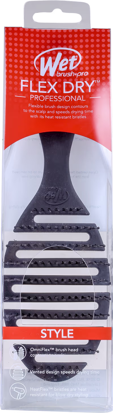 A Escova Flex Dry Wet Brush Pro possui um formato vazado para distribuir o ar quente do secador ao longo de todo o fio. Flexível, também permite com que a umidade do couro cabeludo inteiro evapore. Assim, torna seu dia a dia muito mais prático.